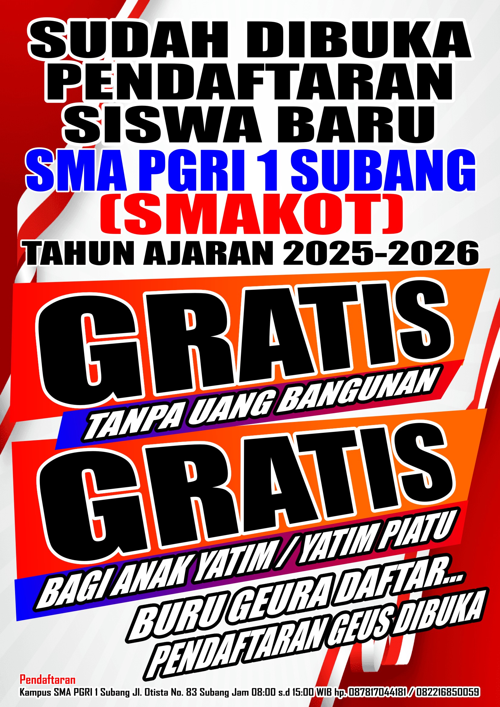 - Bagi pendaftar ke SMA PGRI 1 Subang akan dibebaskan Uang Banguna
